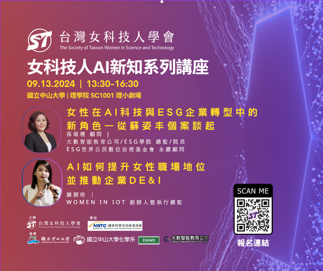 《女科技人AI新知》系列講座 北高兩場熱烈報名中女科技人學會 台灣2024年8月5日讀畢需時 1 分鐘🔥 2024年AI盛年,女科技人學會《AI新知系列講座》北高兩場熱烈報名中🌟🌟 8/23(五) @國立台北科技大學📈 你準備好迎接AI的時代了嗎?💰 針對財富傳承,你是否有清晰的規劃?🌟 9/13(五) @高雄國立中山大學📈 你準備好迎接AI的時代了嗎?🌍 通過 AI、DE&I 和永續發展,探討如何創造更美好的未來✨==============🚀 免費報名!名額有限,請盡早報名!這是自我成長與交流AI知識的難得機會,不容錯過!立即報名👇==============報名請至:【台北場】【高雄場】2024女科技人新知講座2024女科技人新知講座2024女科技人新知講座 議程2024女科技人新知講座 議程